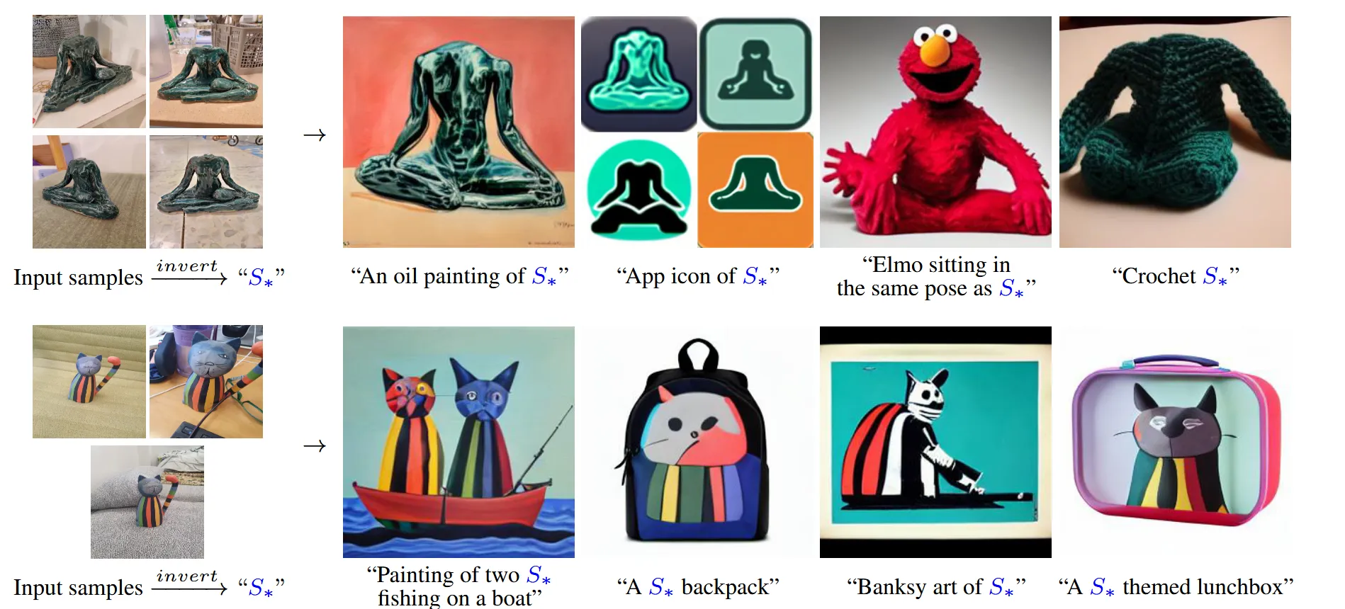 에 대응되는 임베딩 벡터 를 학습하기 위해서는, 다양한 배경과 포즈를 포함하는 3~5개의 이미지가 일반적으로 필요합니다. 이렇게 여러 이미지를 사용하는 이유는 개념의 본질만 잘 학습하도록 하기 위해서입니다.