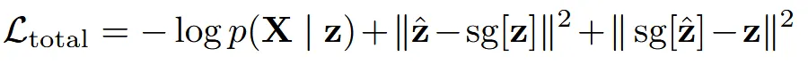 VQ-VAE의 total loss는 위와 같습니다. Reconstruction, commitment, vq loss 3가지로 구성 됐습니다.