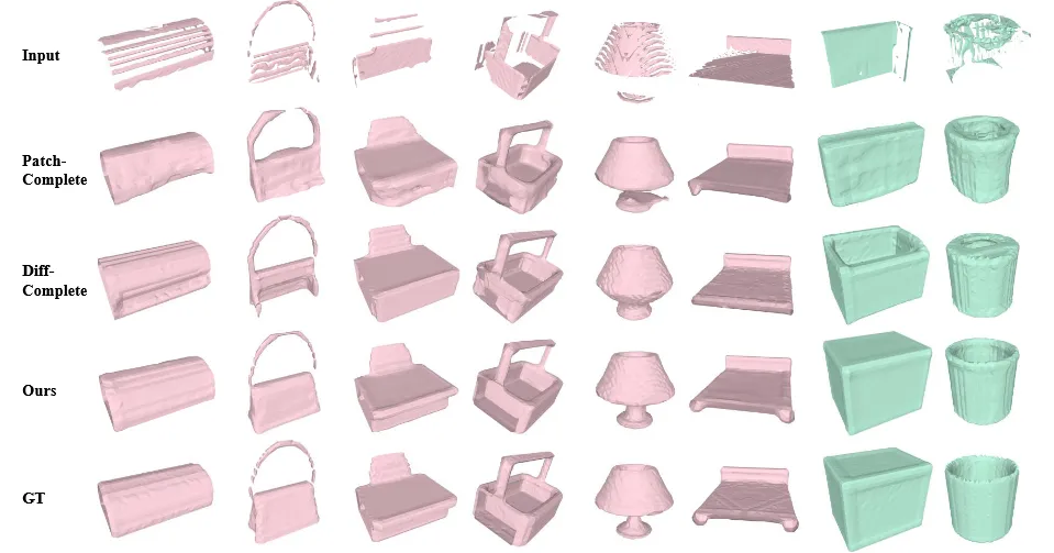 3D Shape Completion은 불안전한 shape으로부터 완전한 shape을 생성하는 과정입니다. 기존 방식들은 CNN 혹은 transformer를 기반으로부터 완전한 shape을 예측해왔습니다. 이후 GAN이나 autoencoder와 같은 생성 모델을 이용해서 확률론적 shape 생성 과정으로도 발전 됐습니다.