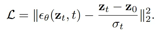 Diffusion 모델은 timetstep t에서 latent를 보고 해당하는 노이즈를 예측합니다. 이때 노이즈의 ground truth는 원래의 latent 과 t에서의 latent 의 차이 즉 실제 주입된 노이즈의 값입니다. 해당 과정은 정답 노이즈와 예측한 노이즈 간의 차이를 줄이는 것이 학습 목표입니다.