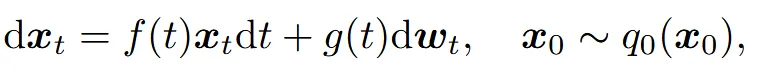 SDE는 위와 같은 항으로 나타내는데, 이때 f(t)는 drift 항, g(t)는 diffusion 항이고 wtw_t는 Wiener process로서 노이즈가 추가되는 부분입니다. 자세한 내용은 위에 나와있던 SDE 논문리뷰를 참고하시면 도움이 되실겁니다.