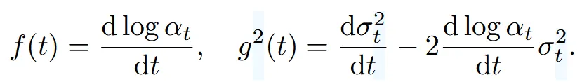 f(t)와 g2(t)g^2(t)는 위와 같이 나타낼 수 있습니다. 위의 수식 전개과정은 “Variational diffusion models”을 참고하시면됩니다.