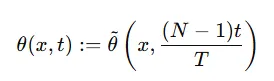 이를 Continuous-time DPM으로 바꿀경우 왼쪽의 Discrete한 식에서 오른쪽 Continuous한 식으로 바꿔야 합니다. Discrete한 경우 0~N까지 총 N-1개의 경우의 수가 있고 Continuous time t를 Dicsret 시간 단계 n으로 변환하기 위해서 (N-1)t / T를 사용합니다. Smoothe Time Embedding 덕분에 Time step이 정수가 아니어도 잘 작동하게 됩니다.