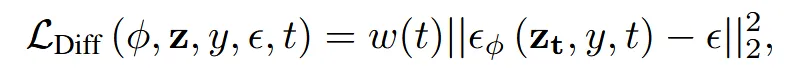 입력 이미지 z, conditioning text y, denoising model 를 이용해서 파라미터 φ를 업데이트하는 과정은 위와 같습니다. Classifier-free guidance(CFG)를 이용해서 text prompt를 반영한 노이즈를 예측하는 과정인 것입니다.