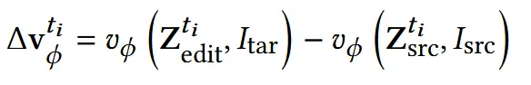 이 과정을 수식으로 표현하면 위와 같습니다. target 조건에서 예측된 velocity와 source 조건에서 예측된 velocity의 차이가 Δv이며, 이 벡터가 바로 편집 방향입니다. 이러한 Δv는 하나의 시점에서 편집된 이미지 한 장만을 조건으로 주었음에도, 전체 6개의 multi-view 이미지(grid 전체)에 일관되게 변화를 반영하는 역할을 합니다.