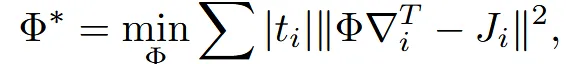 한마디로 요약하자면 입력 base mesh 에 대해 topology를 보존하면서 변형하려면, 삼각형 단위의 미세한 변형을 매끄럽게 이어주는 방식이 필요합니다. 이를 위해 Neural Jacobian Fields (NJF) 기법을 사용해 per-triangle Jacobian을 도입하고, 최적화 과정에서 이들 Jacobian이 나타내는 target 변형을 따르는 deformation map Φ를 계산합니다.
