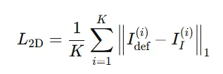 렌더링된 2개의 이미지를 L1 loss를 통해 loss값 계산. L1 loss는 MSE보다 shapr difference(모서리, 실루엣)에 더 민감하게 작동하기 때문.