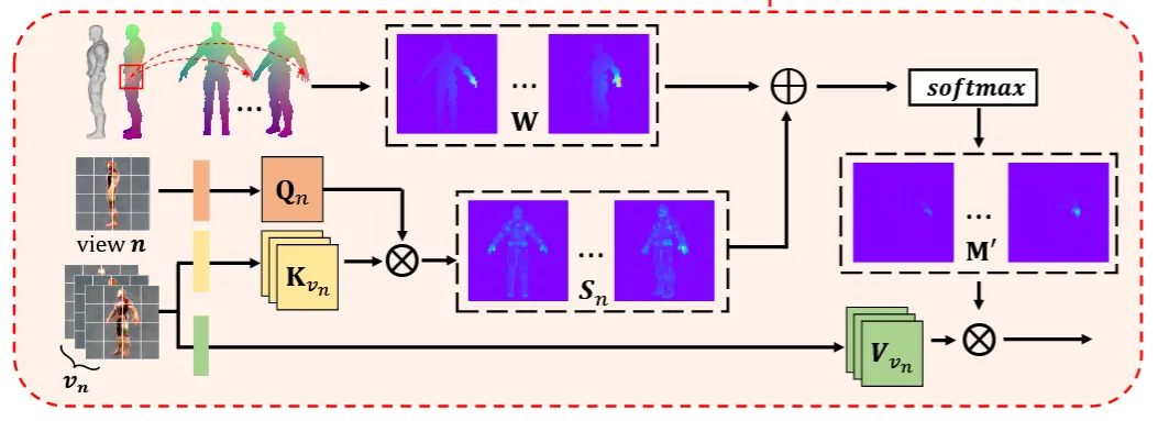 또한 위의 그림은 서로다른 뷰의 패치간에 attention map을 나타내는 것인데 정면에서 얼굴위주로 attention이 찍혀있지만, 다른 뷰에서는 얼굴이 아닌 다른 부분에 attention이 찍혀있습니다. 즉 서로 다른 부분에 대해서 일치시킨다는 문제점이 발생합니다.