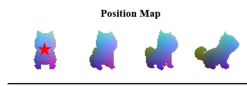 Attention bias matrix를 계산하기 위해 우선 특정시점의 position maps(O)을 생성합니다. Position map은 특정시점에서 보이는 3D좌표(x,y,z)를 (r,g,b)로 변환된 결과입니다. 이후에 각 시점별로 position map끼리의 Euclidean distance()를 구합니다.