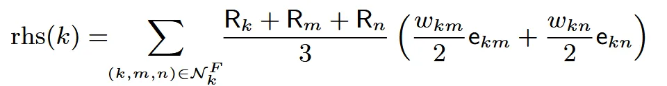 위의 수식은 각 face에서 vertex k 주변 edge들이 해당 회전들에 얼마나 영향을 받는지를 평균적으로 고려하여 vertex k가 움직여야 할 방향을 계산합니다.