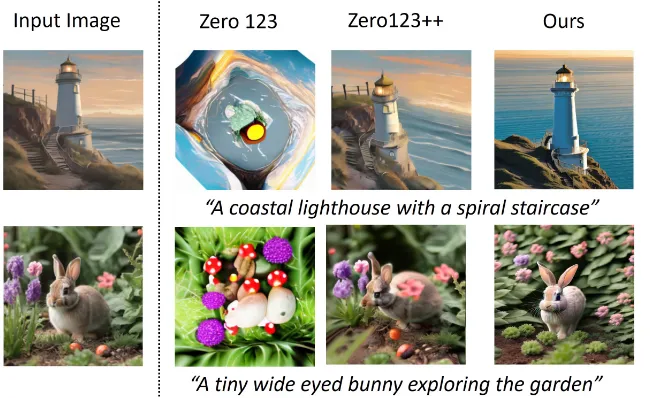 개인적으로 Zero-1-to-3에 관련된 논문을 많이 읽었어서 해당 논문과의 비교를 진행해보는 부분이 흥미로웠습니다. 사진으로도 해당 논문의 결과가 더 좋았고 CLIP Score나 DINO Score를 비교해봐도 수치적으로도 더 좋게 나왔었습니다.