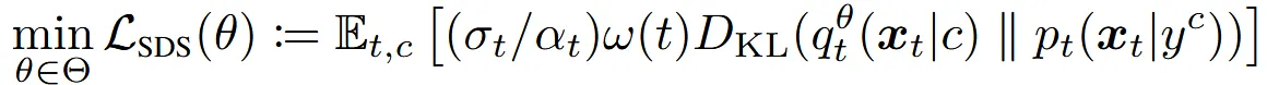 SDS Loss에서 3D 파라미터를 고정된 상수로 뒀지만, 새롭게 제안하는 VSD(Variational Score Distillation) 방식에서는 이를 변수로 둡니다.
