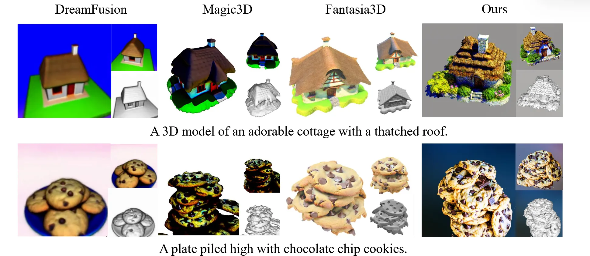 자세한 내용들은 Appendix에 나와있고, 위의 결과를 통해서 해당 모델이 다른 모델들에 비해서 더 고해상도의 사실적인 3D를 생성하는 것을 알 수 있습니다.