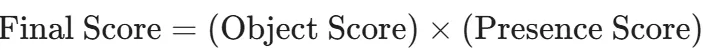 최종 점수는 위와 같이 Presence Score를 기반과 기존 object score를 곱해서 나타내기 때문에 물체가 존재하지 않으면 presence score가 0이라서 최종 score도 0이됩니다. 따라서 기존의 DETR의 token은 물체의 존재여부를 알고 있는 상태에서 물체의 위치만 알 수 있도록 학습 될 수 있기 때문에 global과 local에 대해서 2개의 token으로 분해해서 더 정확한 결과를 얻을 수 있습니다.