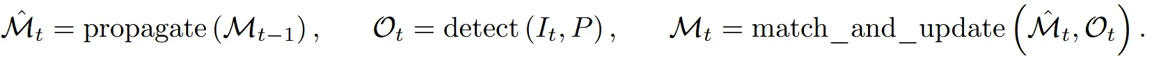 Detector는 매 프레임마다 새로운 물체를 예측해서 결과 로 나타고, Tracker는 이전 프레임에 생성된 mask들 에 대해서 현재 위치에 존재하는지에 대해서 예측한 mask 로 나타냅니다. 이후 Detector가 예측한 와 Tracker가 예측한 를 비교해서 물체가 동일하게 존재하는지, 존재한다면 그 물체를 추적하는 형식으로 진행합니다.