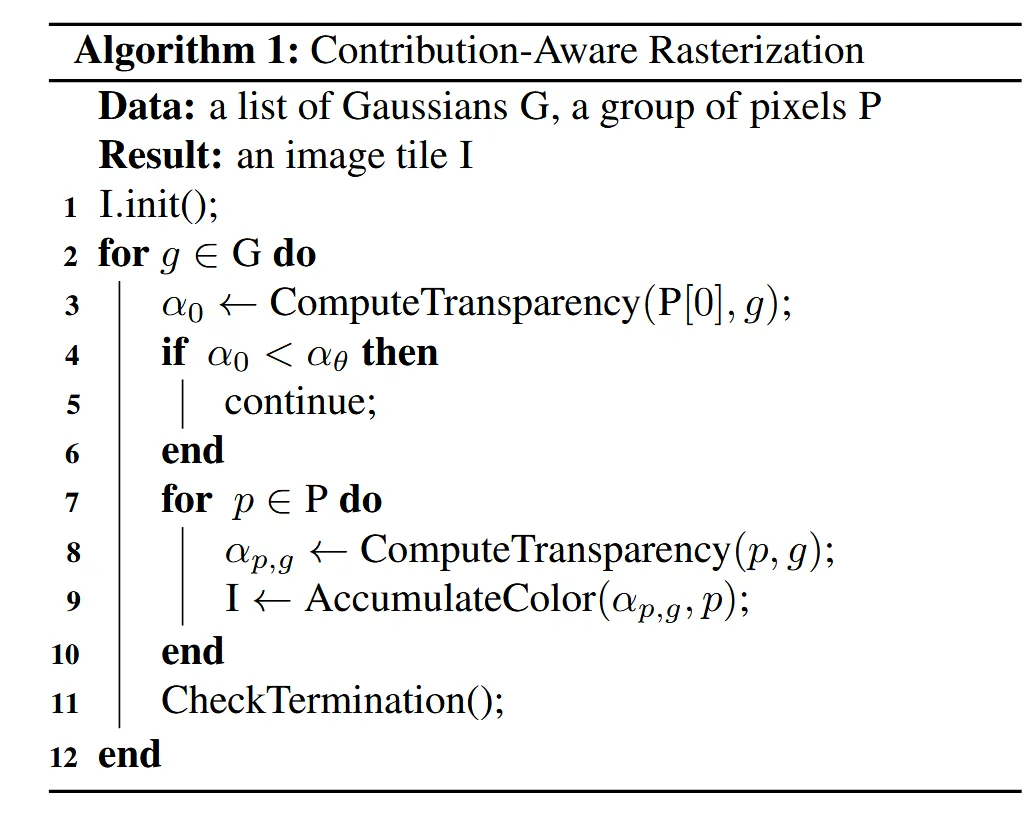 위의 알고리즘으로 어떻게 Contribution-Aware Rasterization가 작동하는지 설명해드리겠습니다.
