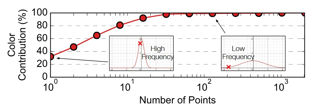 위의 그림은 하나의 픽셀에 대해서 gaussian의 누적 기여도(Γα)의 값을 내림차순으로 시각화 한 것입니다. 1.5%의 상위 gaussian 만으로도 99% 픽셀을 완성할 수 있음을 확인할 수 있습니다. 나머지 98.5%의 gaussian들은 픽셀에 미미한 영향을 미치는 것을 알 수 있습니다.