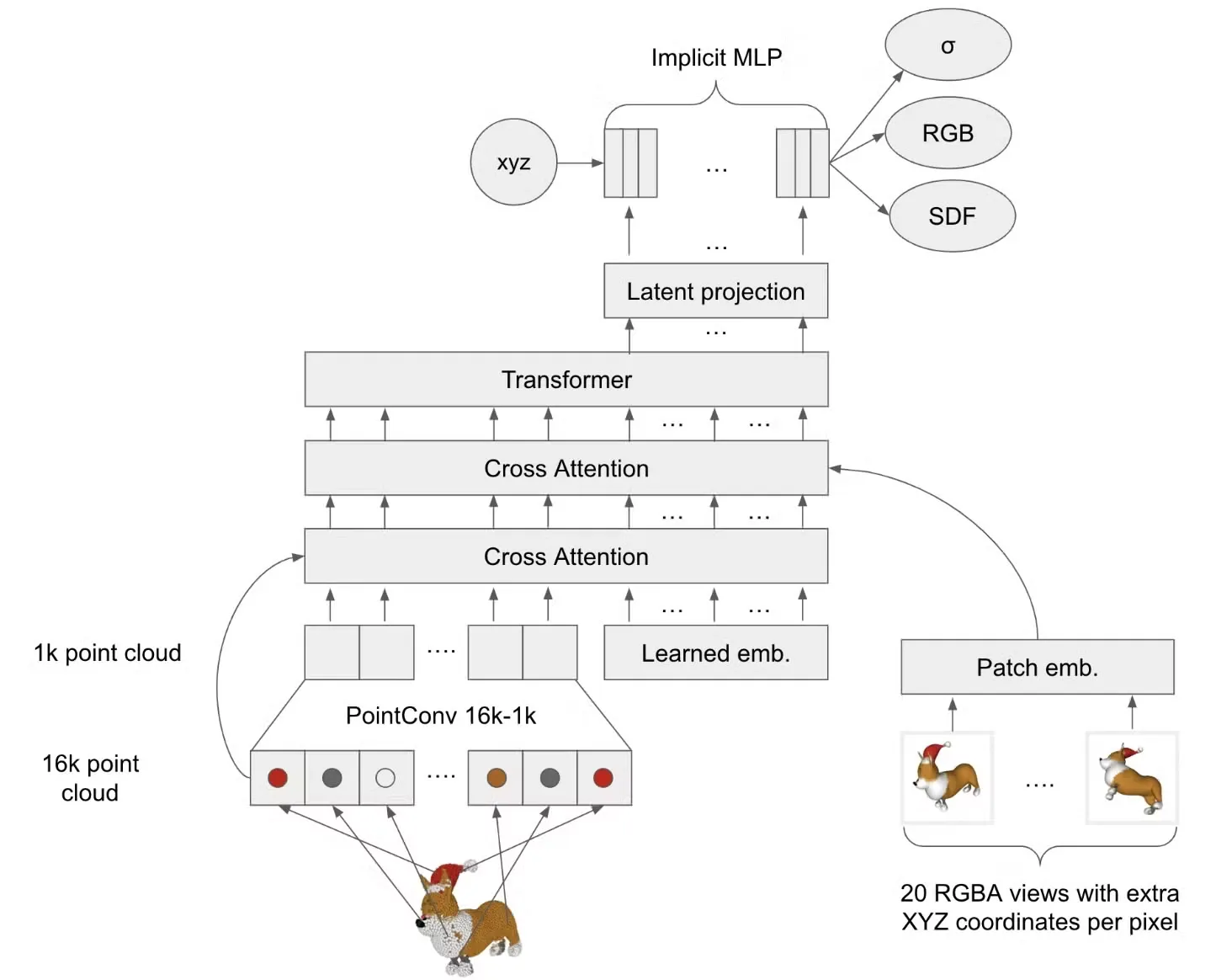 학습 시에는 를 각각 3D 오브젝트로 디코딩한 뒤, 랜덤한 시점에서 렌더링하여 얻은 이미지를 기반으로 loss를 계산합니다.