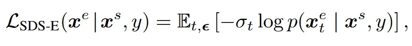 위의 수식은 source 3D object 가 들어왔을 때 text prompt y를 기반으로 편집된 target 3D object 를 생성하는 것입니다.
