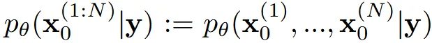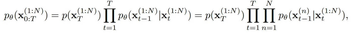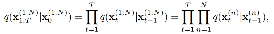 N개의 미리 정의한 이미지를 생성한다고 했을 때 time step 0에서의 값은 로 표현할 수 있습니다. 우리는 N개의 이미지에 대한 joint distribution을 구하고 싶습니다.