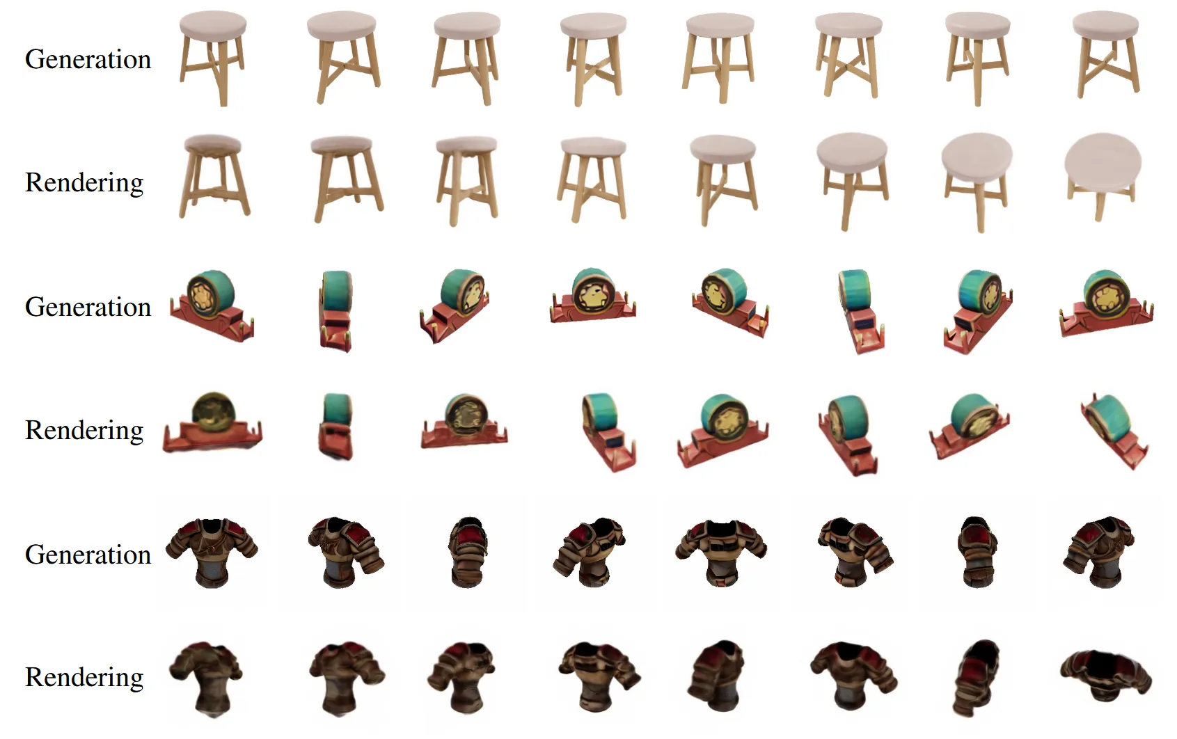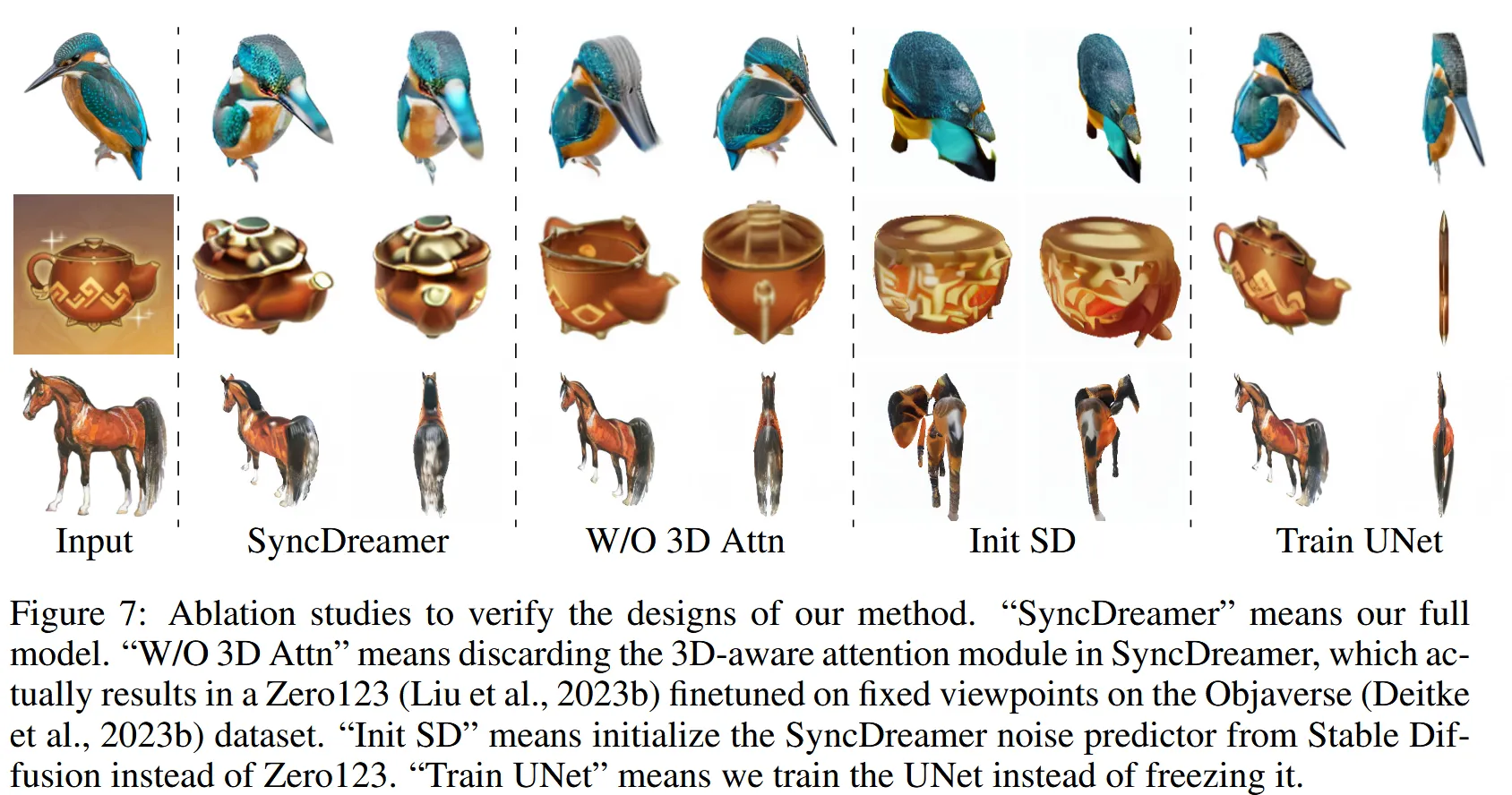 홀수번째 줄이 SyncDreamer로 생성한 이미지, 짝수번째 줄이 이를 기반으로 NeuS로 생성한 이미지입니다. 제한된 view라는 점을 NeuS로 생성하려고 했지만 결과를 보시면 blur 해지는 것을 알 수 있습니다.