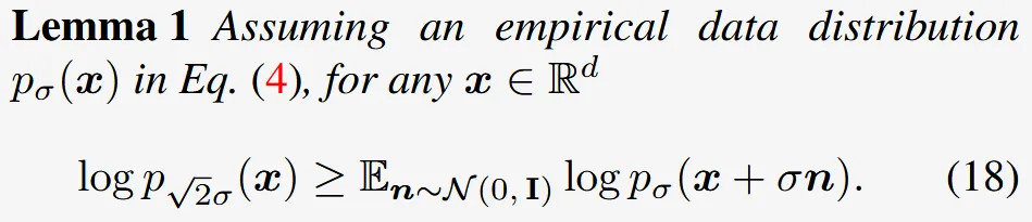 한문장 요약: 원본에 표준편차 σ인 Gaussian 노이즈를 한 번 더한 분포(pₛ(x)) 위에, PAAS에서 다시 σ 노이즈를 추가하면 두 독립 노이즈의 분산(σ² + σ²)이 더해져 2σ²가 되고, 따라서 최종 노이즈 세기는 √(2σ²)=√2·σ가 됩니다.