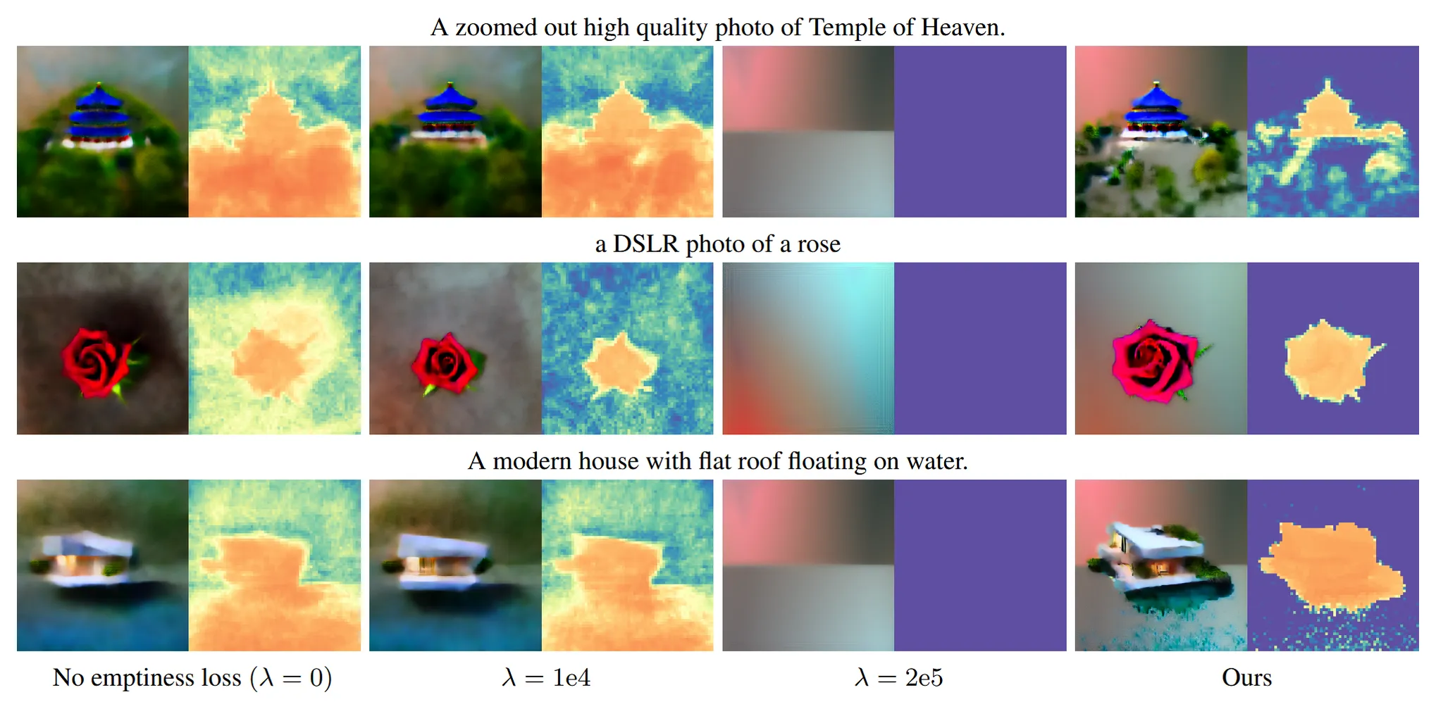 Grid 전체에 살짝 denisty를 채워 넣음으로써 그럴싸한 3D를 생성하는 현상을 막기 위해서 정규화 전략을 사용합니다.