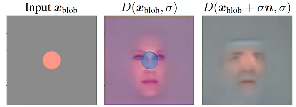 Data(y)에 noise를 더한 형태인 y + n에서 노이즈를 예측해서 제거하는 denoiser(D)를 통해서 원본 Data(y)를 생성하는 과정이 위와 같습니다. Denoiser(D)는 일반적으로 ConvNet을 사용합니다.
