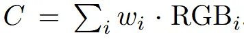 각각의 샘플에서의 weight 값을 이용해서 최종적인 pixel color(C)를 위의 수식으로 예측하게 됩니다.