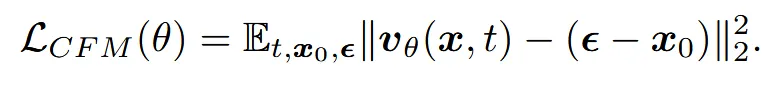 해당 모델의 forward 과정은 linear interpolation 과정으로 데이터 샘플 에서부터 timestep t만큼의 노이즈를 추가하는 것이고, backward process는 t시점에서의 vector field를 예측하는 것입니다.