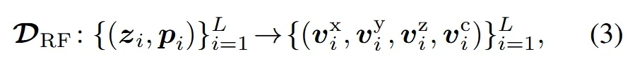 3D Gaussians, Radiance Fields, and meshes를 최종 결과로 얻기 위해서 Decoder를 3개를 만듭니다. 3개의 Decoder는 마지막 output layer를 제외하고는 동일한 아키텍처를 사용합니다. 학습할 때는 각 출력에 맞는 loss를 사용합니다.