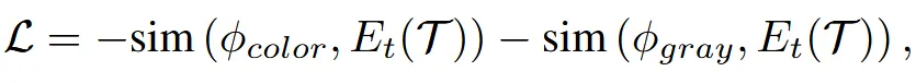 MLP를 통해서 나온 결과는 크게 컬러까지 적용된 와, 위치 변화만 적용된 2개가 나옵니다. 각각을 렌더링 한 결과를 , 를 augmentation해서 CLIP image encoder에 통과시켜 text clip encoder의 결과와 유사하게 cosine similarity로 학습합니다.