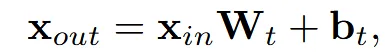 Dynmaic linear layer는 위와 같이 정의 할 수 있습니다. 입력 차원이 , 출력 차원이 일 때 의 차원은 , 의 차원은 입니다.