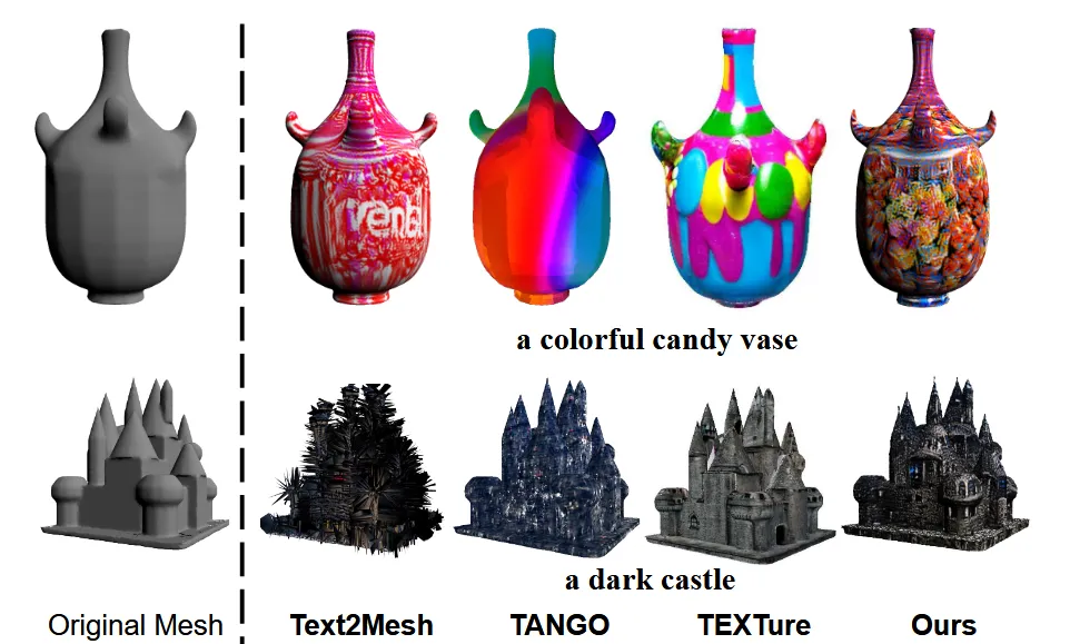 3D Mesh를 Text prompt에 맞게 꾸미는 기술입니다.