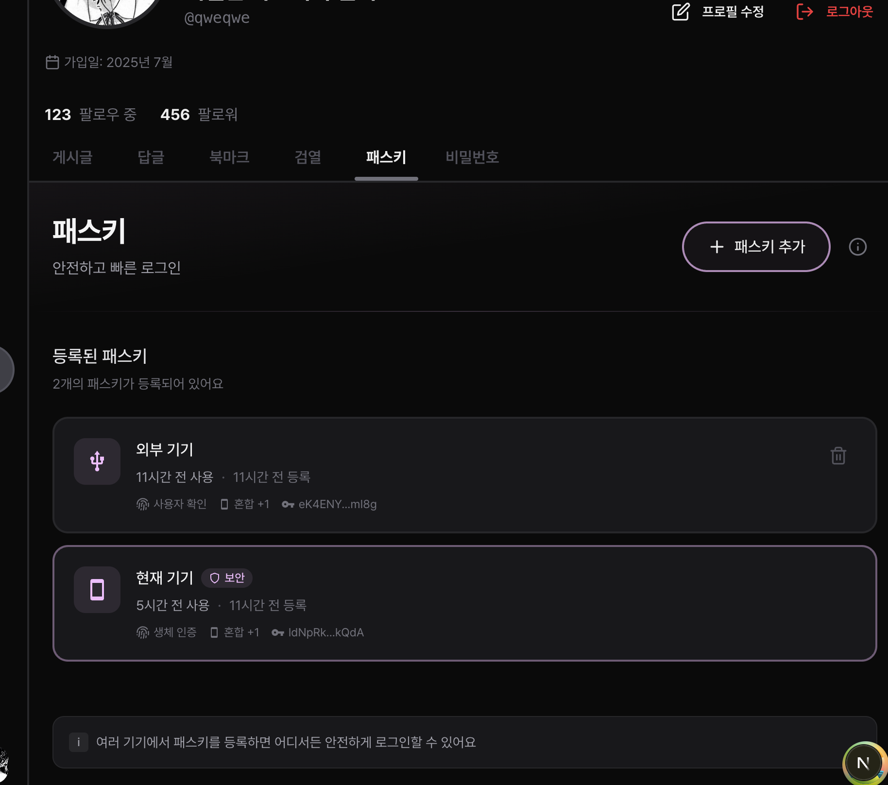 패스키 등록