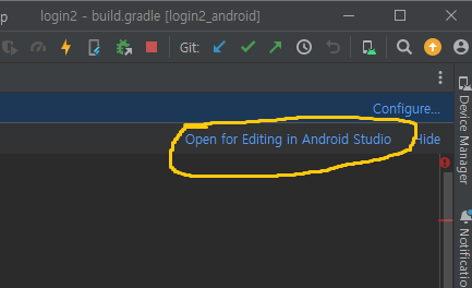 app-build.gradle에 들어가서 Open for Editing in Android Studio를 누른다