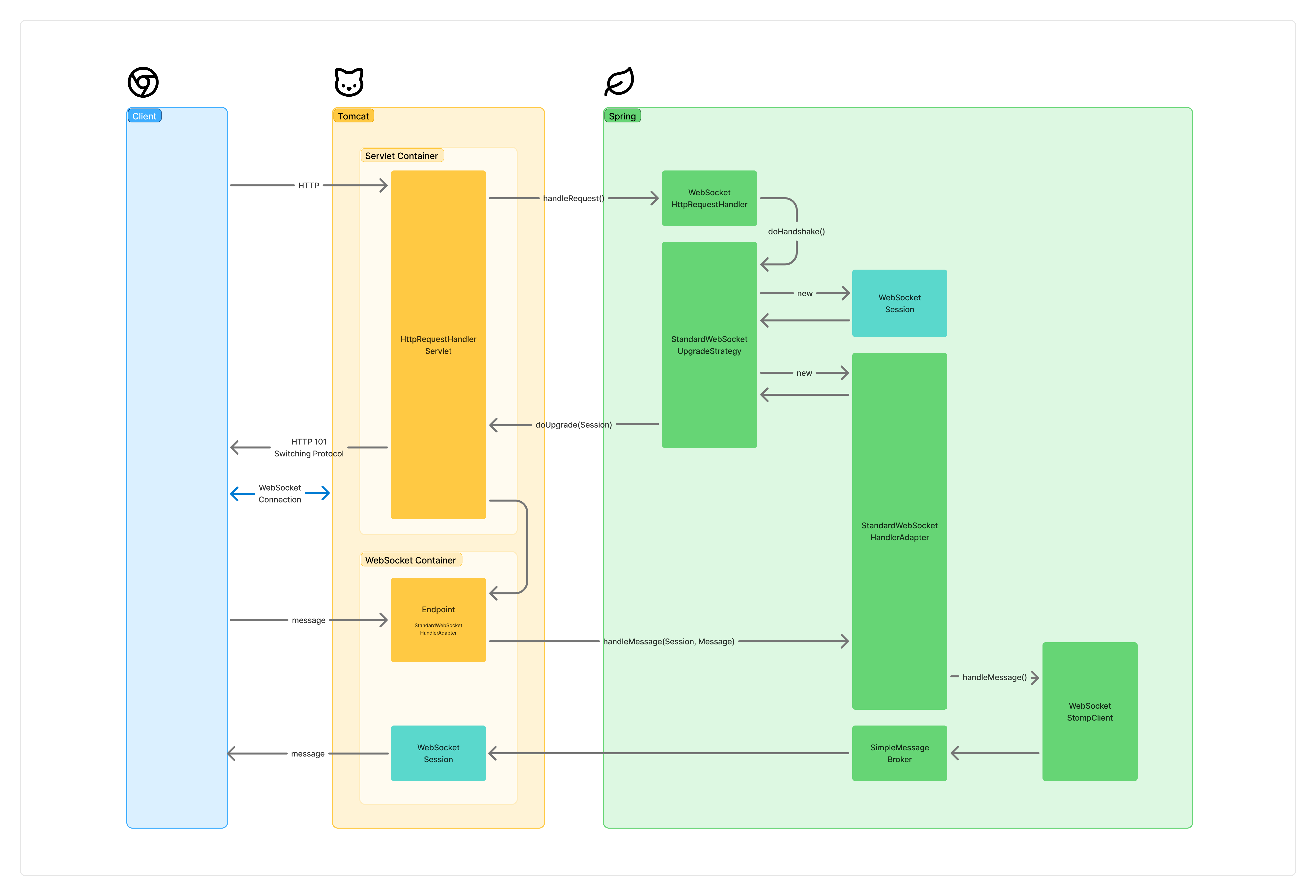 이번 글에서는 제가 프로젝트를 위해 웹소켓을 이용한 채팅을 구현하면서 이해한 Spring WebSocket의 동작 과정을 정리해보려고 합니다.