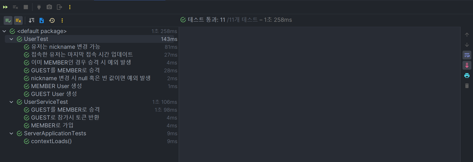 마지막으로 언제봐도 기분 좋은 전체 테스트 통과 스샷을 첨부하며 마치겠습니다ㅎㅎㅎ