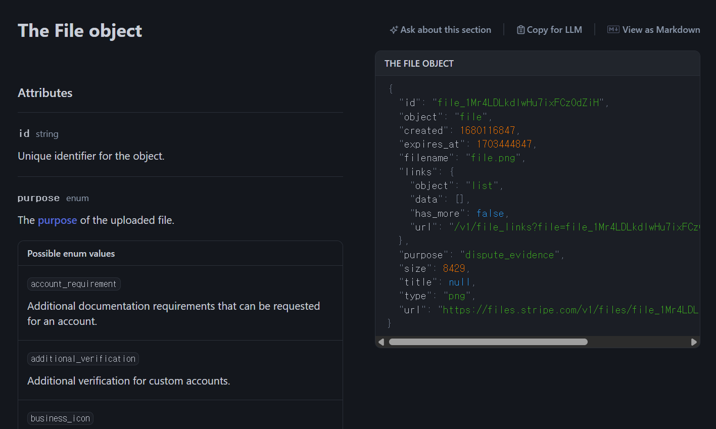 위는 API 설계의 좋은 예시로 자주 언급되는 Stripe의 API 명세서 예시입니다. 보시면 "id" 필드에 "file_1Mr4LD..." 처럼 접두사 + 난수로 표현되어 있는 것을 확인할 수 있습니다. 이러한 형식을 차용하여 user_ 접두사와 UUID를 합쳐 public_id라는 칼럼을 추가하도록 해주었습니다.