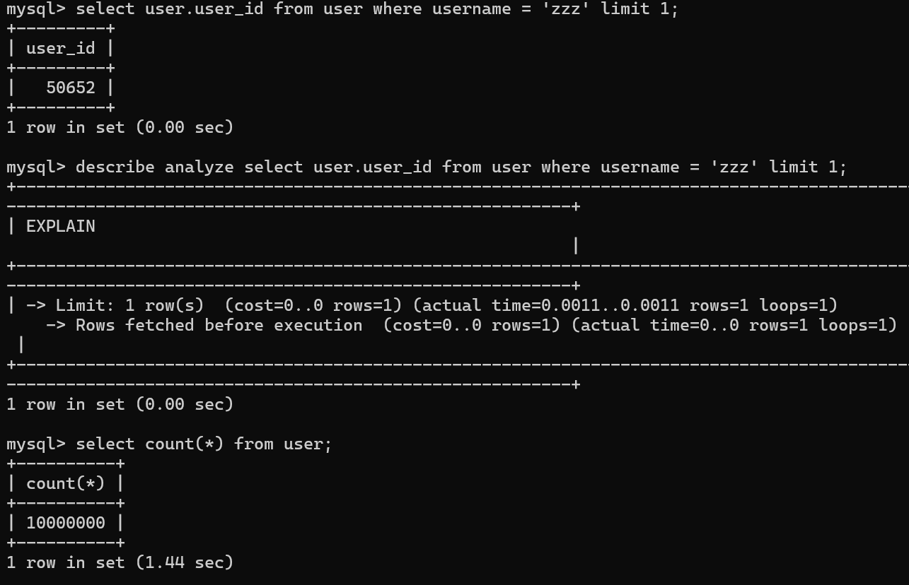 결론부터 말씀드리면, Username에 대한 유니크 인덱스만으로 속도가 너무 잘 나옵니다.