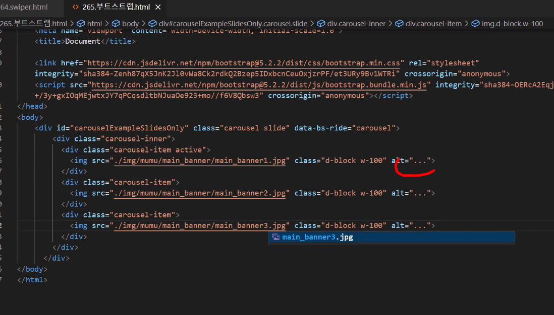 -> swiper와 동일하게 js (min 없애서) 따오면... 이친구 어떻게 걸려있는지 알수있다! (css도 마찬가지)