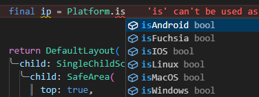 // Platform.is 작성하면 사진처럼 지금 어떤 OS에서 코드를 짜고 있는지,