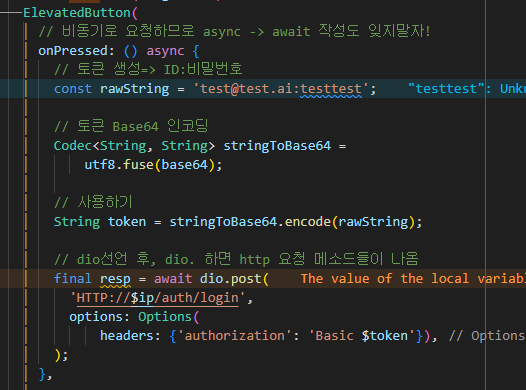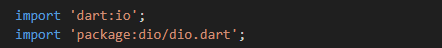 // dio선언 후, dio. 하면 http 요청 메소드들이 나옴