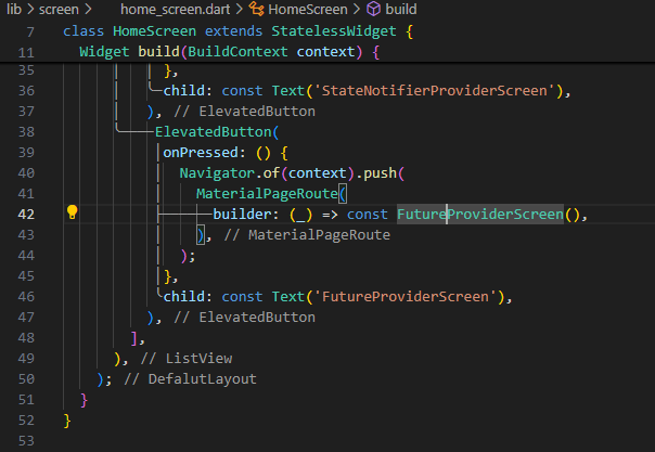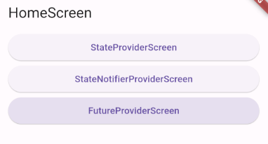 그러면 홈스크린 화면에서 FutureProviderScreen 버튼이 추가된 걸 확인할 수 있다.