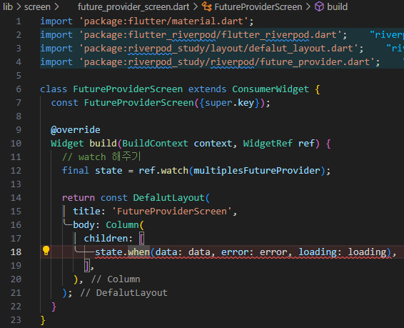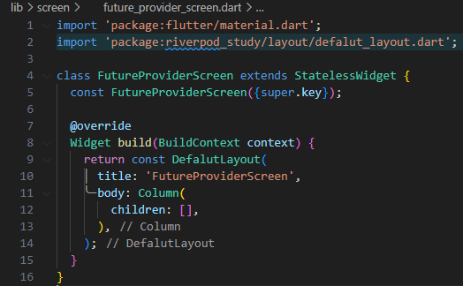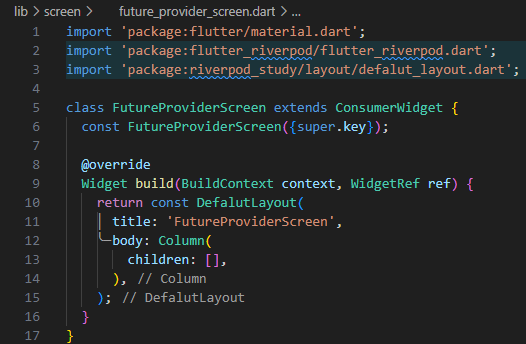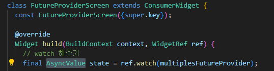 FutureProviderScreen에서 StatelessWidget을 ConsumerWidget으로 변경해준다.