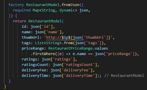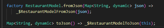 factory RestaurantModel.fromJson(Map<String, dynamic> json) =>