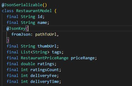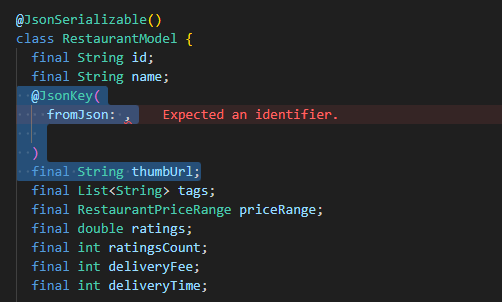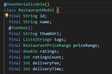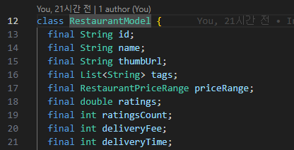 이걸 저장하고 다시 빌드하면 restaurant_model.g.dart 코드에도 자동으로 적용됨!