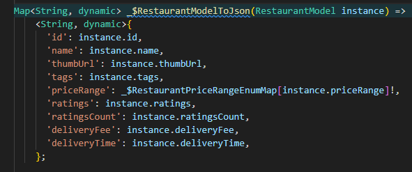 .g.dart 파일의 _$RestaurantModelFromJson 코드랑 거의 똑같음.