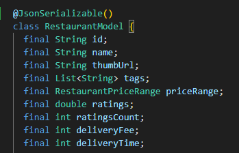 class RestaurantModel 윗줄에 @JsonSerializable( ) 애노테이션을 작성해준다.