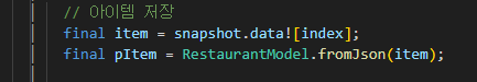 이렇게 하다 보면 restaurant_screen.dart에서 에러가 발생한다.